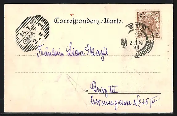 alte Ansichtskarte, gelaufen 1898, Stempelspur, guter Zustand