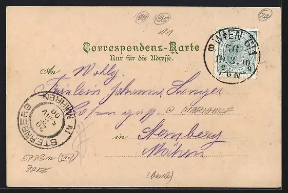 alte Ansichtskarte, gelaufen 1900, Stempelspur, guter Zustand