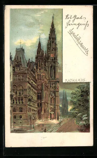 AK Wien, Rathaus mit Strassenpartie
