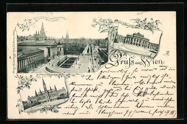 AK Wien, Rathhaus, Reichsrathsgebäude mit Franzensring