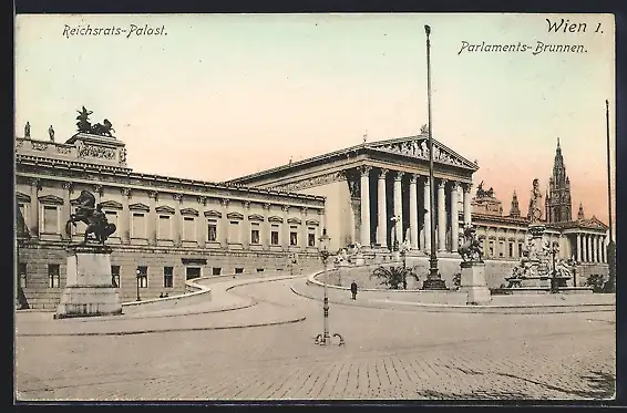 AK Wien, Reichsrats-Palast mit Parlaments-Brunnen