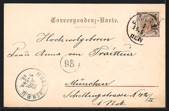 alte Ansichtskarte, gelaufen 1898, guter Zustand
