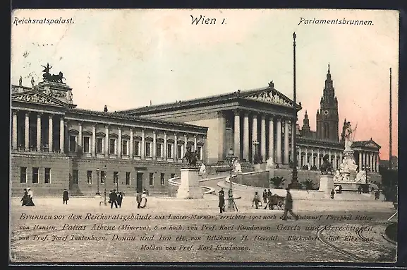 AK Wien, Reichsratspalast und Parlamentsbrunnen