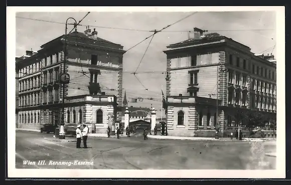 AK Wien, Rennweg-Kaserne mit Eingang und Strasse