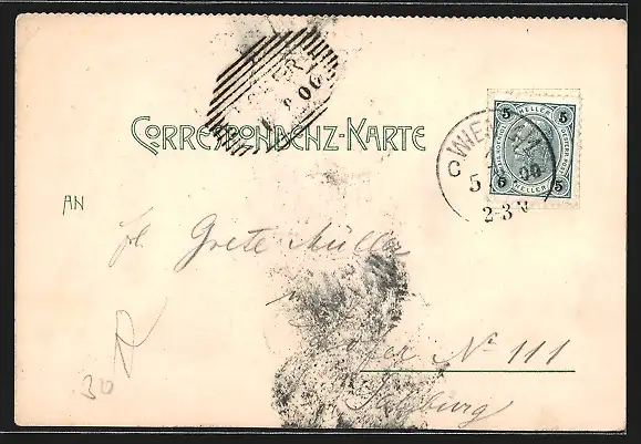 alte Ansichtskarte, gelaufen 1900, Stempelspur, guter Zustand