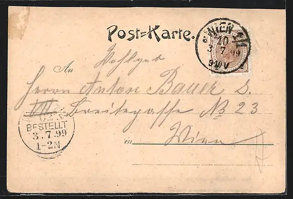 alte Ansichtskarte, gelaufen 1899, Eckknick li. oben, Bugspur re. mittig, guter Zustand