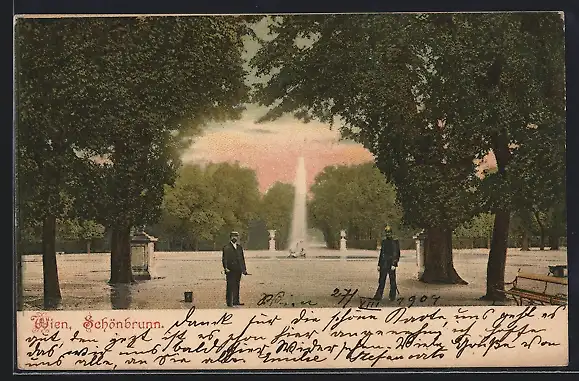 AK Wien, Schönbrunn, Park mit Springbrunnen