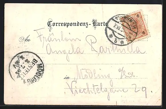 alte Ansichtskarte, gelaufen 1904, Eckknick links unten, Einriss unterer Rand links, Bugspur oberer Rand links, guter Zustand