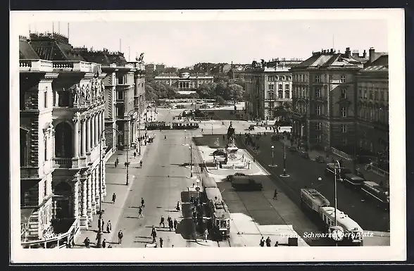 AK Wien, Schwarzbergplatz aus der Vogelschau mit Strassenbahnen