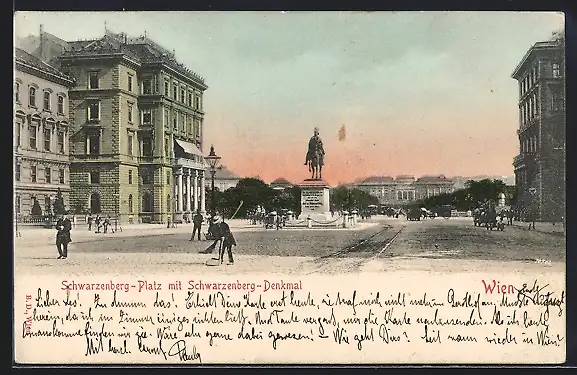 AK Wien, Schwarzenberg-Platz mit Denkmal im Panorama