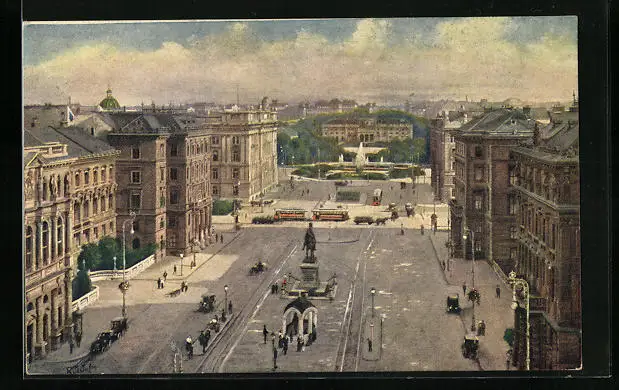 AK Wien, Schwarzenberger Platz mit Strassenbahn aus der Vogelschau