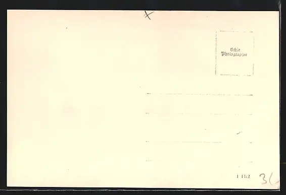 Personenbezogene Daten auf der Rückseite der Karte wurden durch blauen Textmarker unkenntlich gemacht. Die blauen Stellen sind auf die Vorderseite durchgeweicht und wirken sich negativ auf das Postkartenfoto aus