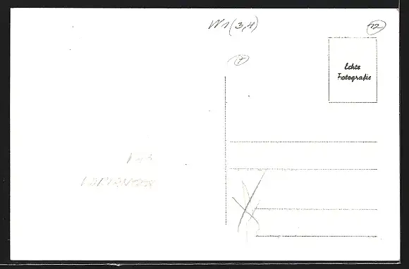 Personenbezogene Daten auf der Rückseite der Karte wurden durch blauen Textmarker unkenntlich gemacht. Die blauen Stellen sind auf die Vorderseite durchgeweicht und wirken sich negativ auf das Postkartenfoto aus