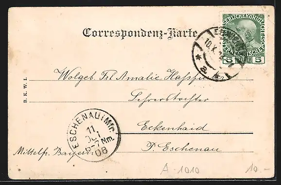 alte Ansichtskarte, gelaufen 1908, Eckknick li. oben, guter Zustand