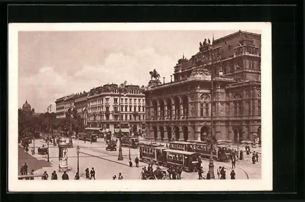 AK Wien, Staatsoper und Opernring, Strassenbahnen auf dem Platz