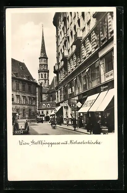 AK Wien, Stallburggasse mit Café und Michaelerkirche