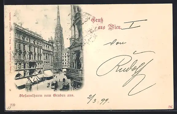 AK Wien, Stefansthurm vom Graben aus
