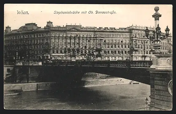 AK Wien, Stephaniebrücke mit Ob. Donaustrasse