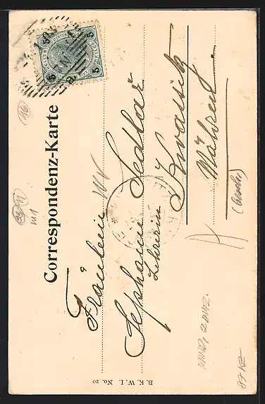 gelaufen 1903, Stecknadelloch oben mittig, Bugspur li. oben, guter Zustand