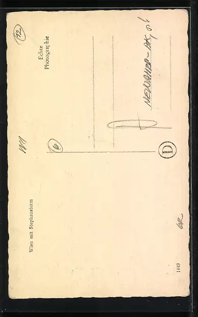 Personenbezogene Daten auf der Rückseite der Karte wurden durch blauen Textmarker unkenntlich gemacht. Die blauen Stellen sind auf die Vorderseite durchgeweicht und wirken sich negativ auf das Postkartenfoto aus