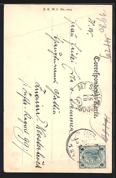 alte Ansichtskarte, gelaufen, Bugspur oben diagonal, guter Zustand