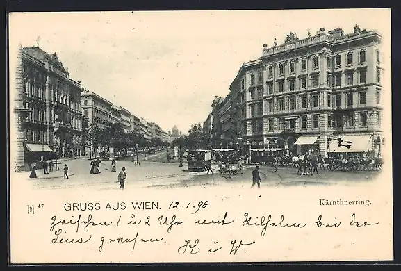 AK Wien, Strasse Kärnthnerring mit Strassenbahn