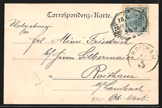 gelaufen 1902, Stempelspur, Eckknick li. unten, guter Zustand