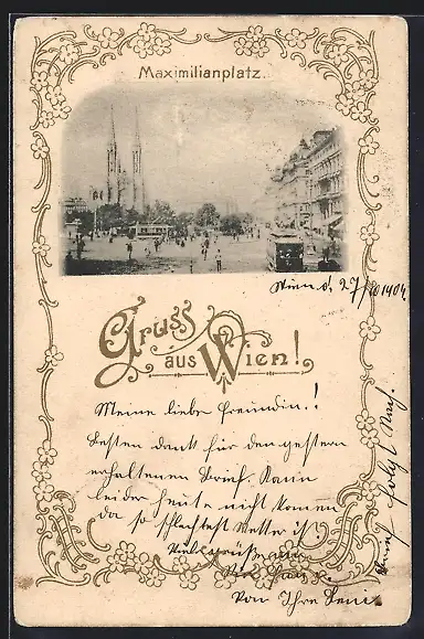 AK Wien, Strassenbahn am Maximilianplatz