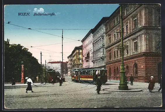AK Wien, Strassenbahn in der Bellariastrasse