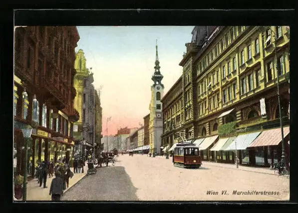 AK Wien, Strassenbahn in der Mariahilferstrasse
