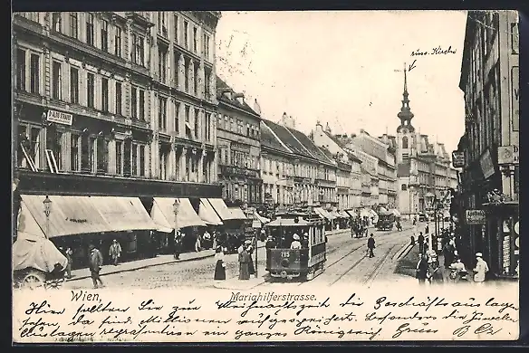 AK Wien, Strassenbahn in der Mariahilferstrasse