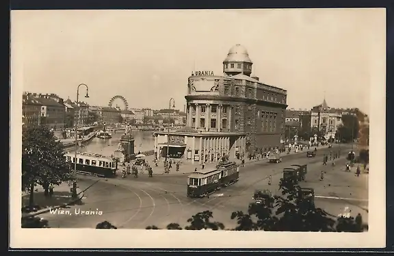 AK Wien, Strassenbahnen am Aspernplatz mit Urania