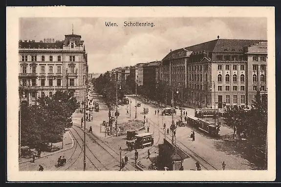AK Wien, Strassenbahnen auf dem Schottenring, Pferdebahn