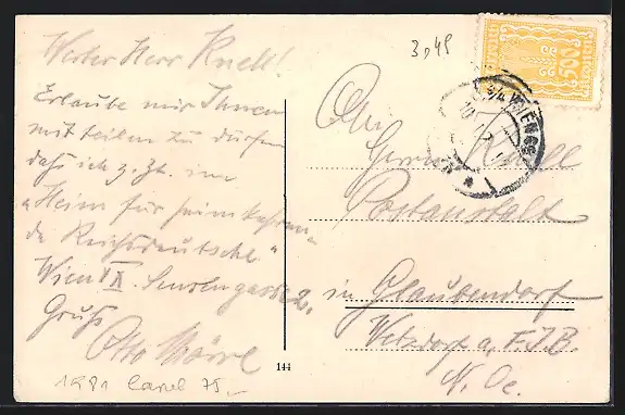 Personenbezogene Daten auf der Rückseite der Karte wurden durch blauen Textmarker unkenntlich gemacht. Die blauen Stellen sind auf die Vorderseite durchgeweicht und wirken sich negativ auf das Postkartenfoto aus
