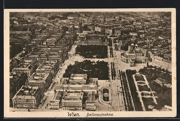 AK Wien, Teilansicht mit Kirche vom Ballon aus