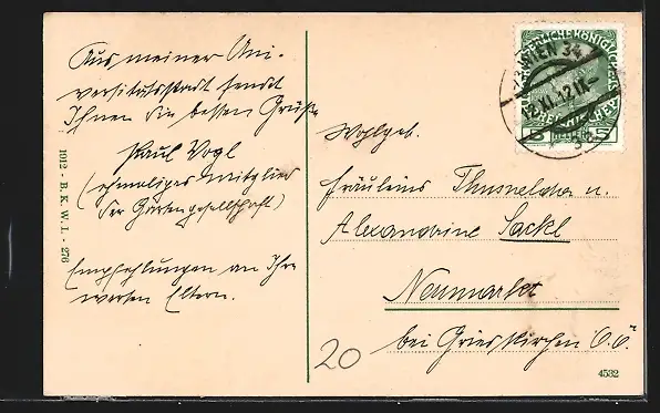 alte Ansichtskarte, gelaufen 1912, guter Zustand