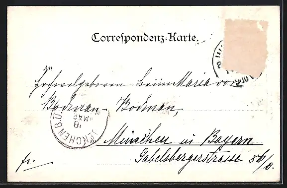 alte Ansichtskarte, gelaufen, Briefmarke entfernt, rückseitig Oberflächenschaden, guter Zustand