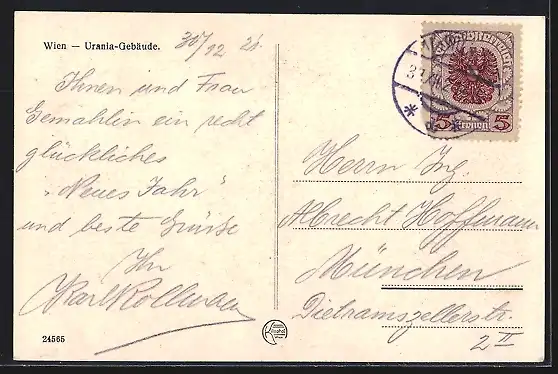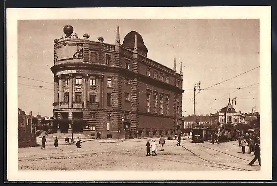 AK Wien, Urania-Gebäude mit Strassenbahn