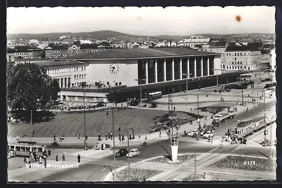 AK Wien, Westbahnhof mit Strassenbahn