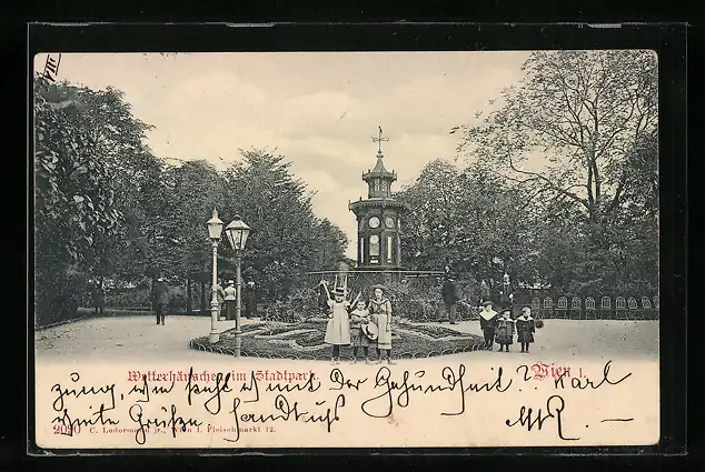 AK Wien, Wetterhäuschen im Stadtpark, Wettersäule