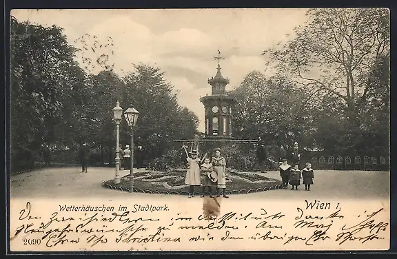 AK Wien, Wetterhäuschen im Stadtpark, Wettersäule