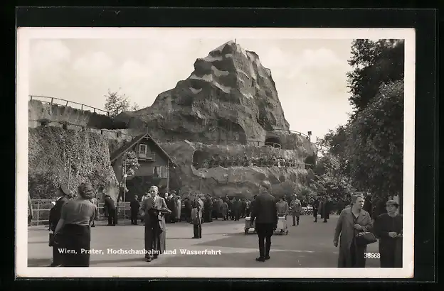 AK Wien, Wiener Prater, Hochschaubahn und Wasserfahrt