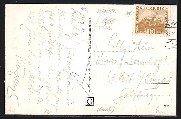 alte Ansichtskarte, gelaufen 1931, Bugspur li. unten, guter Zustand