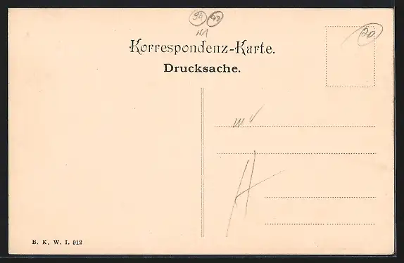Personenbezogene Daten auf der Rückseite der Karte wurden durch blauen Textmarker unkenntlich gemacht. Die blauen Stellen sind auf die Vorderseite durchgeweicht und wirken sich negativ auf das Postkartenfoto aus