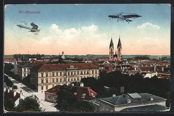 AK Wiener-Neustadt, Flugzeuge über der Stadt