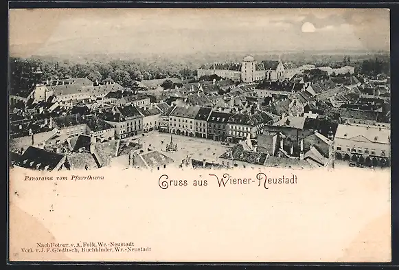 AK Wiener-Neustadt, Teilansicht bei Mondschein