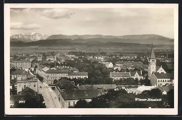 AK Wiener-Neustadt, Teilansicht mit Kirche und Strassenpartie
