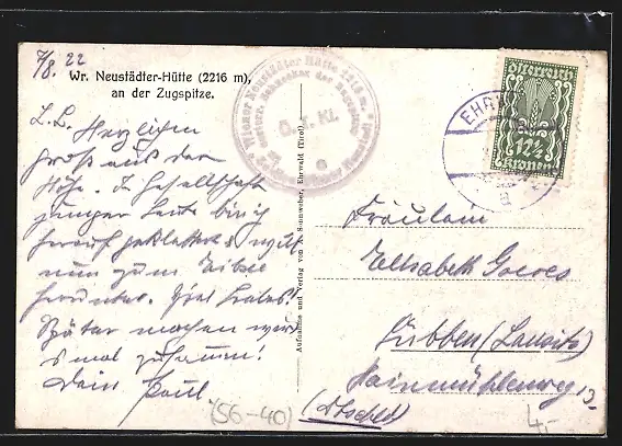AK Wiener Neustädter Hütte, Berghütte an der Zugspitze