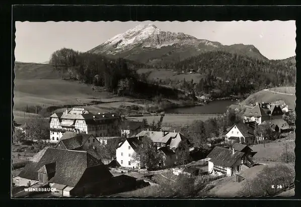 AK Wienerbruck, Ortsansicht mit Bergpanorama