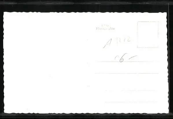 Personenbezogene Daten auf der Rückseite der Karte wurden durch blauen Textmarker unkenntlich gemacht. Die blauen Stellen sind auf die Vorderseite durchgeweicht und wirken sich negativ auf das Postkartenfoto aus